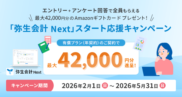 弥生会計 Nextスタート応援キャンペーンも開催中です。