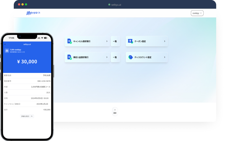 飲食業などの店舗では、予約キャンセルの連絡対応やキャンセル料の請求業務が現場の大きな負担になっています。その課題を解決すべく、キャンセル料の請求から回収・催促までを自動化したのが、「請求できるくん」です。
