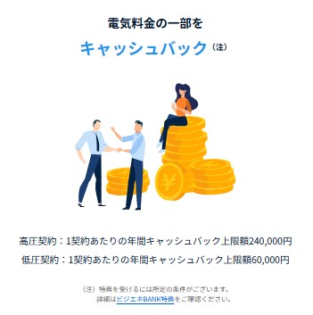 電気の利用金額に応じてキャッシュバックが受けられることは、ビジエネBANKの大きな魅力です。