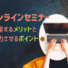 オンラインセミナーのメリット4つ。メリットを最大限に活かしてオンラインセミナーを成功させる秘訣 オンラインセミナーを開催するメリットとは。成功させるポイントや創業手帳の事例をご...