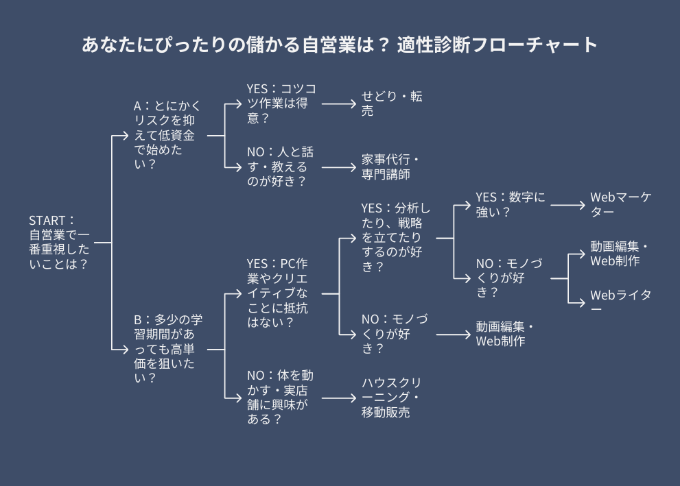 あなたにぴったりの職種はどれ?儲かる自営業「適性診断」フローチャート