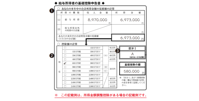 - 申告者の所得の見積額が900万円以下=基礎控除申告書で判定した区分ⅠがA