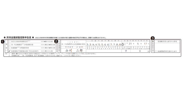 「給与所得者の基礎控除申告書 兼 給与所得者の配偶者控除等申告書 兼 給与所得者の特定親族特別控除申告書 兼 所得金額調整控除申告書」の書き方