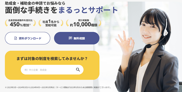 「社長の顧問」は、助成金・補助金の制度調査から申請手続きのサポートまでを一貫してサポートするサービスです。累計約10,000種類の制度情報を掲載し、専任のコンシェルジュチームが付くことで、経営者の負担を大幅に軽減します。