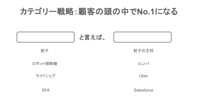 田岡:カテゴリー戦略とは、「自分たちがNo.1になれる独自の市場をつくること」です。もう少し丁寧に言うと、「新しい市場をつくり、そこでNo.1ブランドとしてポジションを築くこと」。