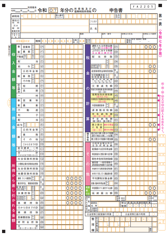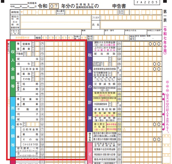 - 確定申告書の書き方2. [第一表]収入・所得・所得控除