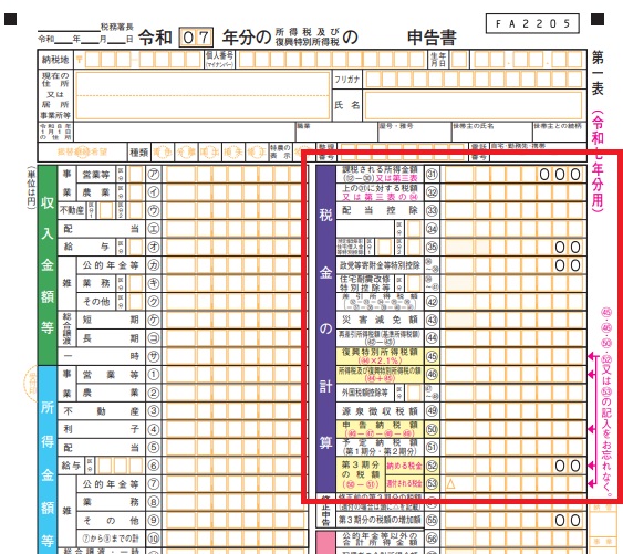 - 確定申告書の書き方3. [第一表]税金の計算