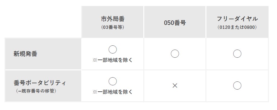 新規発番はもちろん、現在オフィスでお使いの電話番号をそのまま移行することも可能です。