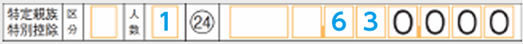 まず第一表では「所得から差し引かれる金額」の「特定親族特別控除㉔」に人数や金額を記入します。例えば、特定親族の人数が1人で、その方の合計所得金額が58万超85万円以下の場合は、「1(人)、630,000(円)」といった具合です。